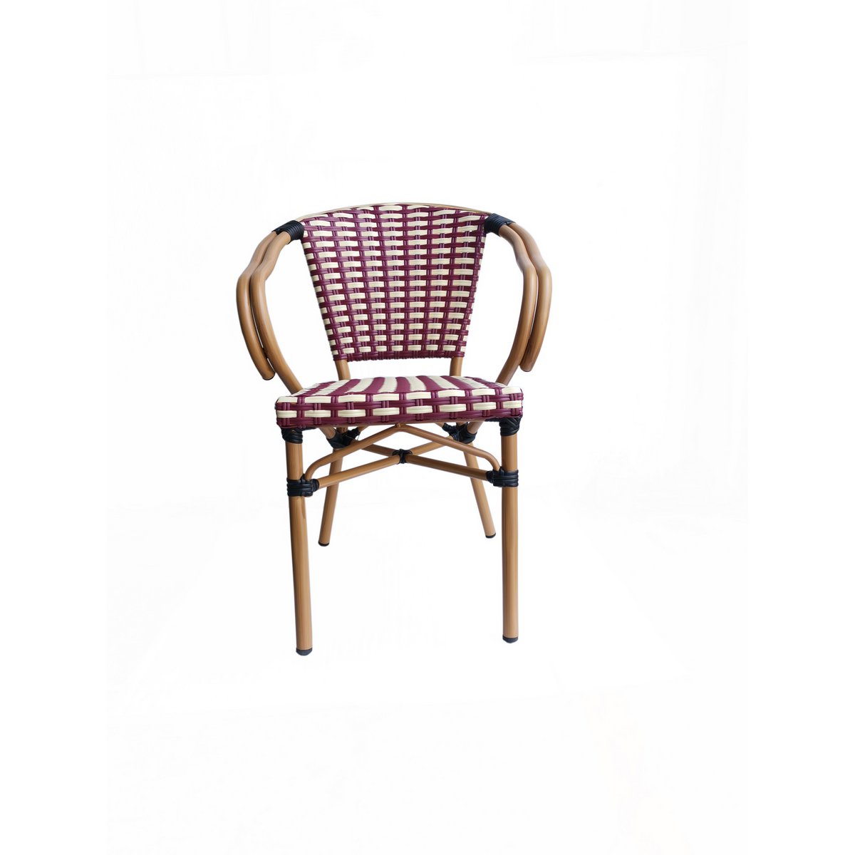 Dieser Rattan Stuhl mit seinem leichten Gestell aus Aluminium ist sehr stabil gefertigt. Das aus Polyrattan gefertigte Geflecht in Rattan-Optik in Sitz- und Rückenteil harmoniert perfekt mit schon vorhandenem Mobiliar. Der Armlehnstuhl, welcher einem Kaffeehausstuhl gleicht, ist handgefertigt und passt sich dank seines warmen und exotischen Charmes jeden Wohnbereich an. Kombiniert zu Factory Design oder Vintage, antik und rustikal, diese Sitzgelegenheit passt immer. Als Bistrostuhl oder Loungestuhl eignet sich diese Sitzgelegenheit in jedem Fall. Vereinbar in der Gastronomie mit vielerlei schon vorhandenen Einrichtungen. Dekoriert mit einem hübschen Kissen als Einzelstuhl im Gästezimmer oder Schlafzimmer. Im Esszimmer und Wohnbereich bietet er einen bequemen Sitzplatz für Ihre Gäste. In großen Dielen oder Fluren, auf der Terrasse oder im Wintergarten bietet dieser Stuhl mit seiner wunderschönen naturbelassenen Optik einen Platz zum Ausruhen. Bitte beachten Sie mögliche leichte Farbabweichungen zur Darstellung auf Ihrem Bildschirm. Sitzhöhe 45 cm, Sitzbreite 42 cm, Sitztiefe 41 cm, wetterfest, UV-beständig, stapelbar (12 Stück), belastbar bis 120 kg.